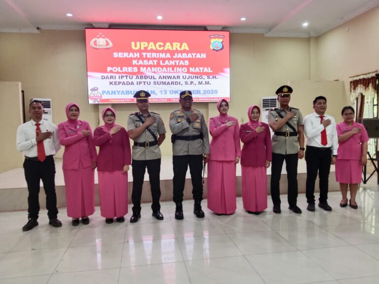 Suasana haru terasa di lingkungan Polres Mandailing Natal (Madina) saat IPTU Bagus Seto, yang selama ini dikenal sebagai KBO Reskrim sekaligus Plt Kasi Humas, menyampaikan pamit untuk melaksanakan tugas di tempat yang baru (Ditressiber Polda Sumut). Acara pelepasan yang berlangsung sederhana namun penuh keakraban itu dihadiri Kapolres ‘AKBP Arie Sofandi Paloh, S.H., S.I.K beserta sejumlah perwira lainnya, Ketua Bhayangkari Cabang Madina, JPU, Anggota, dan Staf Polres Madina, Senin (13/10/25).