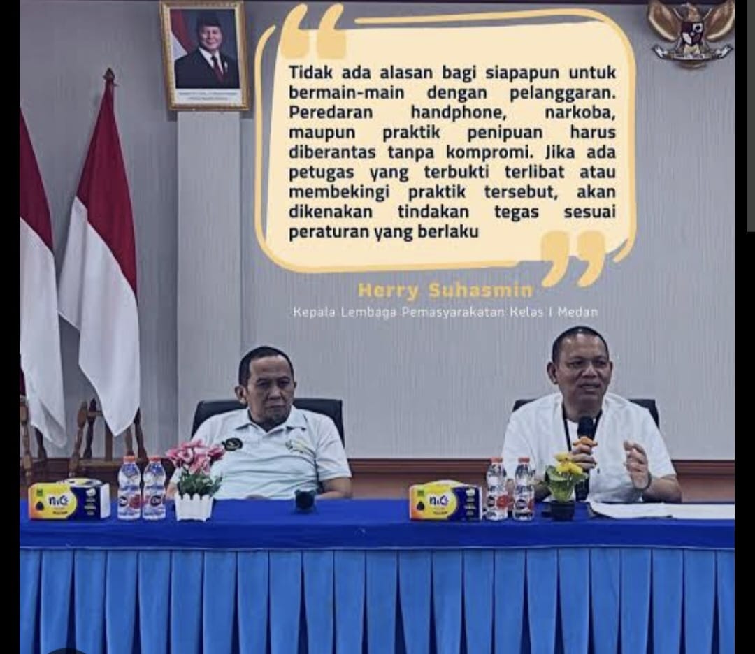 MEDAN — Kepala Lembaga Pemasyarakatan (Kalapas) Kelas I Medan, Herry Suhasmin, menegaskan kembali komitmen jajaran Lapas dalam menjaga integritas dan memberantas segala bentuk penyimpangan di lingkungan pemasyarakatan. Penegasan ini disampaikan dalam rapat penguatan pengamanan yang digelar sebagai bagian dari evaluasi rutin dan konsolidasi internal.