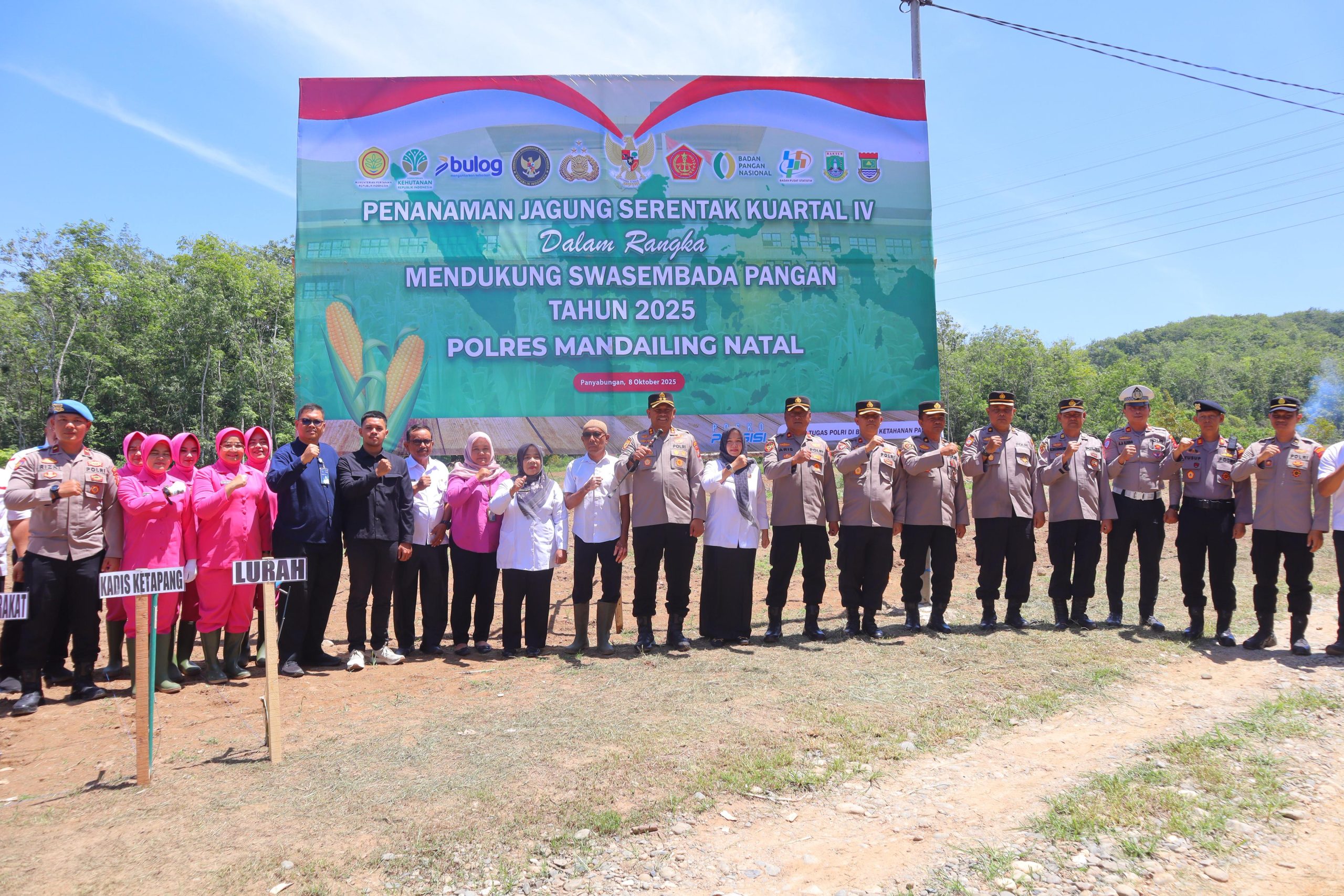 Kapolres Madina melalui Plt Kepala Seksi Humas, Iptu Bagus Seto, SH, mengatakan, tanam jagung kuartal keempat ini merupakan program Polri dalam mendukung program ketahanan pangan nasional yang digalakkan oleh Presiden Prabowo.
