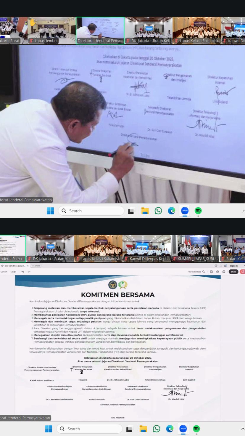 Tanjung Pura, Truthpost – Rumah Tahanan Negara Kelas IIB Tanjung Pura mengikuti kegiatan Penandatanganan Komitmen Bersama Petugas Pemasyarakatan secara virtual yang dilaksanakan secara serentak di seluruh Indonesia. Senin (20/10).